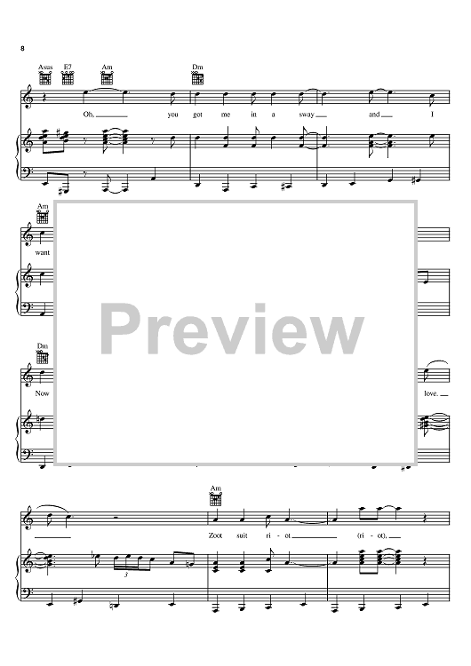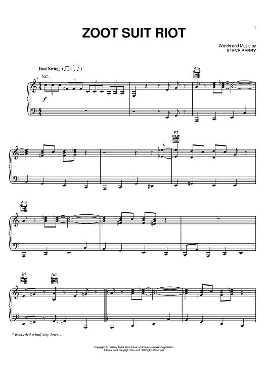 Digital Sheet Music for Zoot Suit Riot by Steve Perry, Cherry Poppin' Daddies scored for Piano/Vocal/Chords; id:368664
