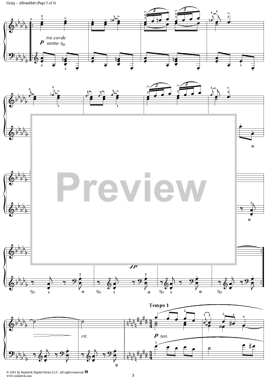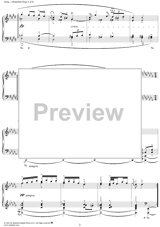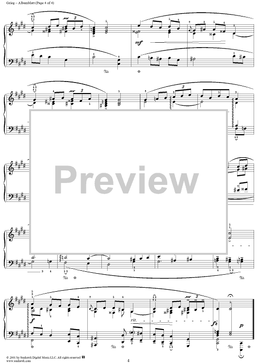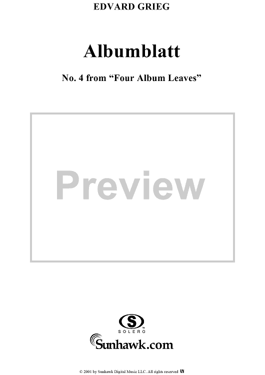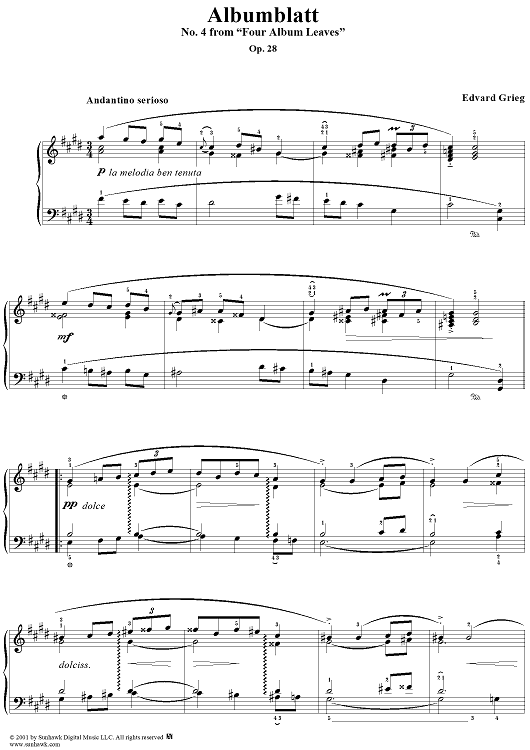 Digital Sheet Music for Albumblatt (Albumleaf), Op.28, No. 4 by Edvard Grieg scored for Piano Solo; id:267723