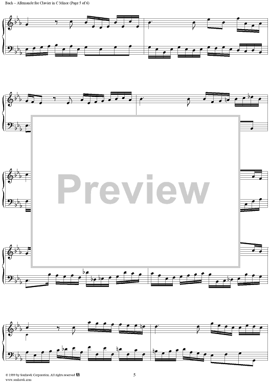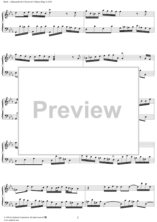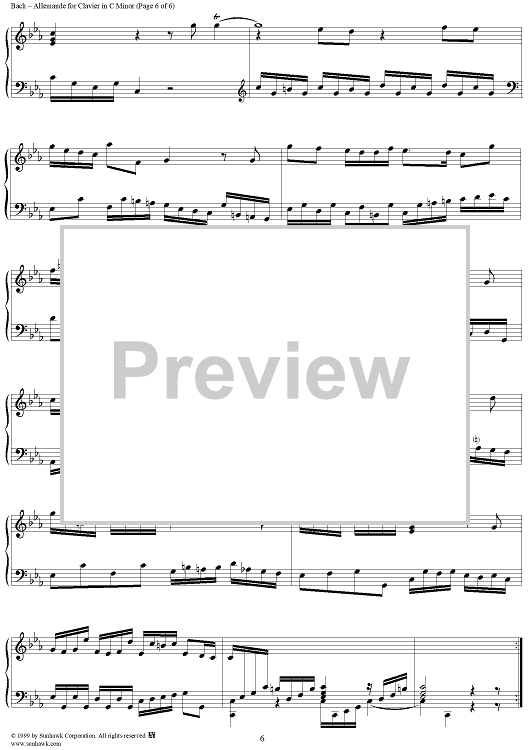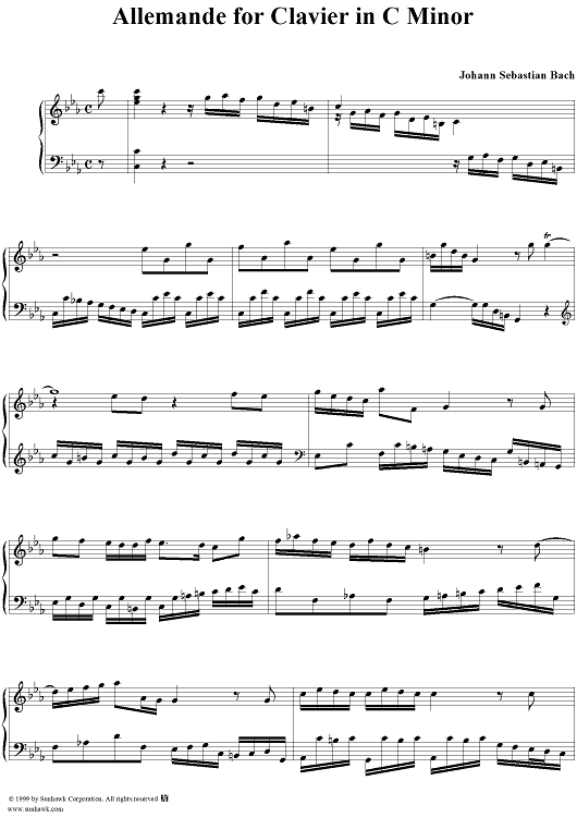 Digital Sheet Music for Allemande in C Minor, BWV834 by Johann Sebastian Bach scored for Piano Solo; id:276784