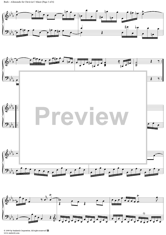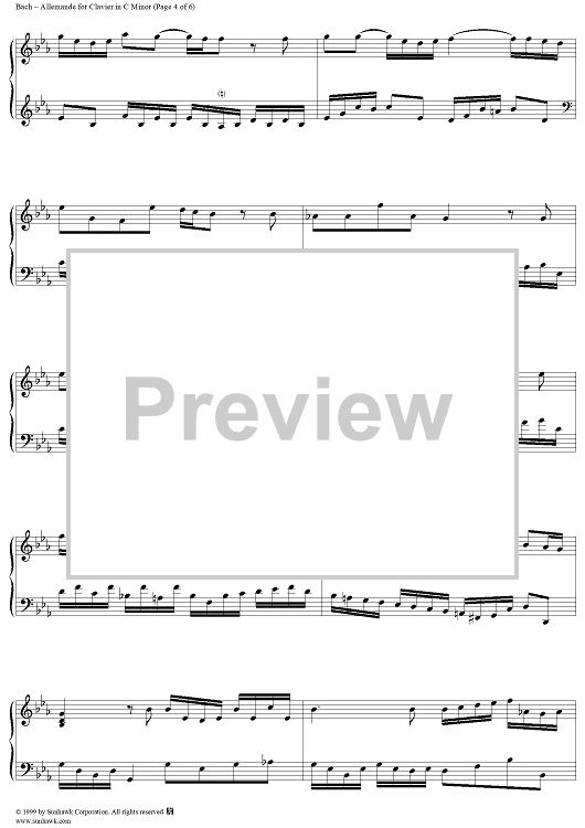 "Allemande in C Minor, BWV834" Sheet Music by Johann Sebastian Bach
