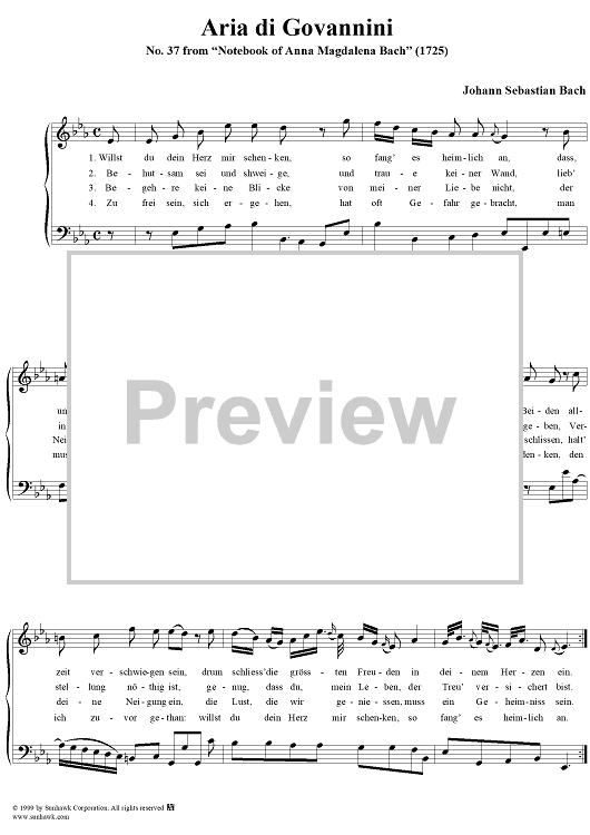 Digital Sheet Music for Aria di Govannini - No. 37 from "Notebook of Anna Magdalena Bach" (1725) by Johann Sebastian Bach scored for Piano Solo; id:274246