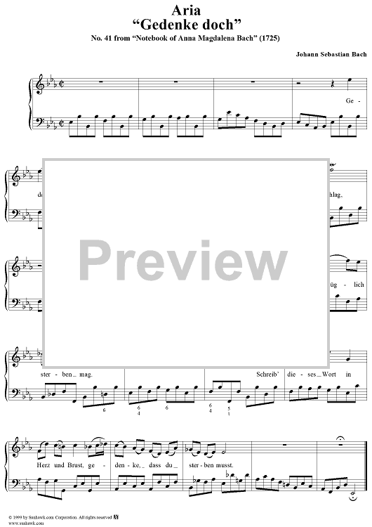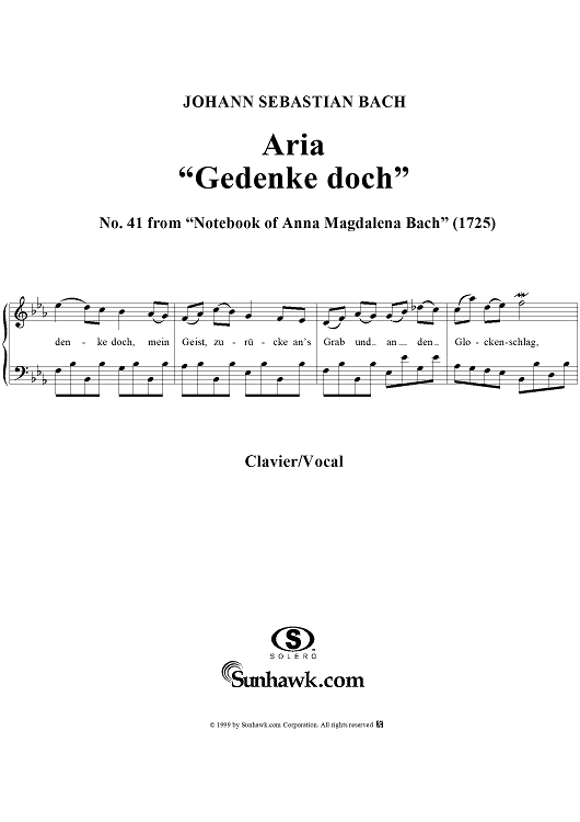 Digital Sheet Music for Aria ("Gedenke doch") from the Notebook of Anna Magdelena Bach by Johann Sebastian Bach scored for Piano Solo; id:241128