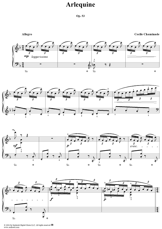 Digital Sheet Music for Arlequine, Op. 53 by Cécile Chaminade scored for Piano Solo; id:303930