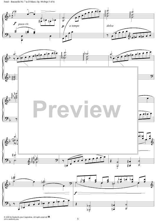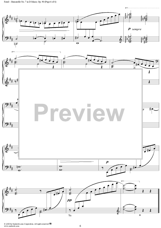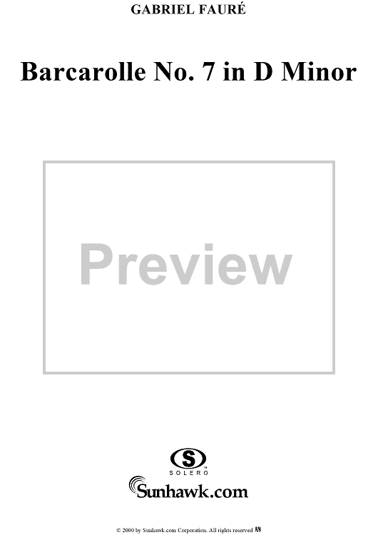 Digital Sheet Music for Barcarolle no. 7 in D Minor - op. 90 by Gabriel Fauré scored for Piano Solo; id:269847