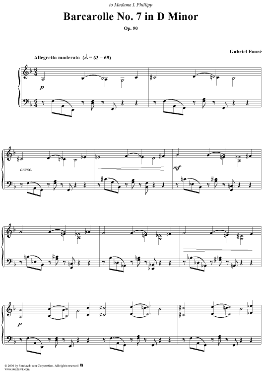 "Barcarolle no. 7 in D Minor - op. 90" Sheet Music by Gabriel Fauré