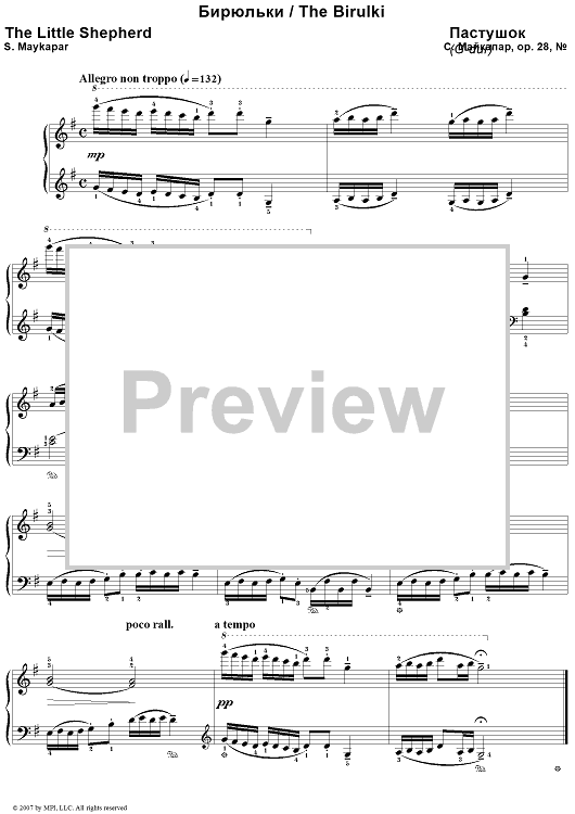 "Birulki. 3. The Little Shepherd (G Major / G-dur)" Sheet Music by Samuel Maykapar