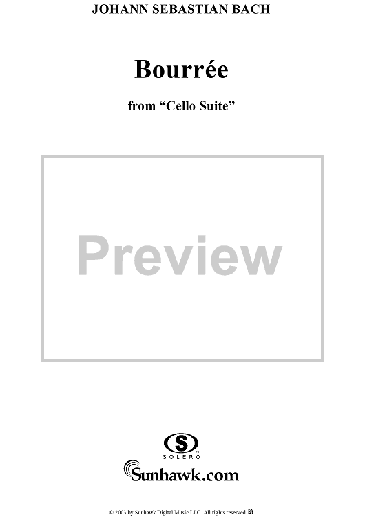"Bourree from the Third Violoncello Suite in G Major" Sheet Music by Johann Sebastian Bach