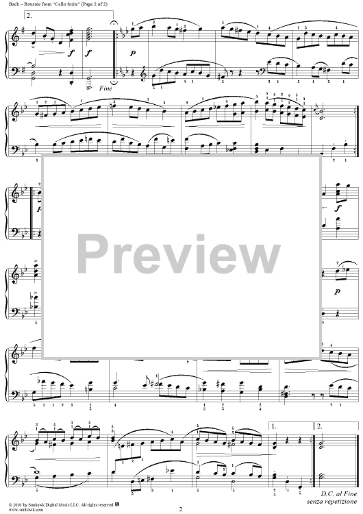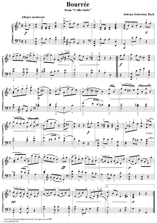 Digital Sheet Music for Bourree from the Third Violoncello Suite in G Major by Heinze, Johann Sebastian Bach scored for Piano Solo; id:294439
