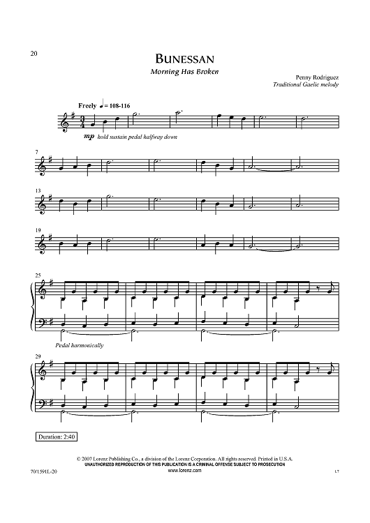 Digital Sheet Music for Bunessan (Morning Has Broken) by Traditional Gaelic Melody, Penny Rodriguez scored for Piano Solo; id:434777