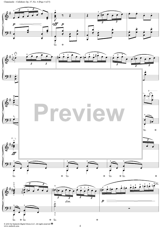 Digital Sheet Music for Callirhoë, Op. 37, No. 4 by Cécile Chaminade scored for Piano Solo; id:294277
