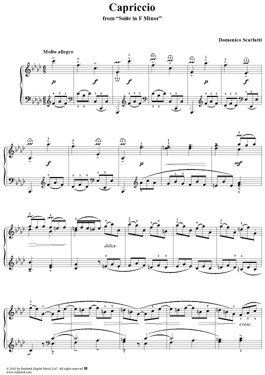 Digital Sheet Music for Capriccio by Domenico Scarlatti scored for Piano Solo; id:283684