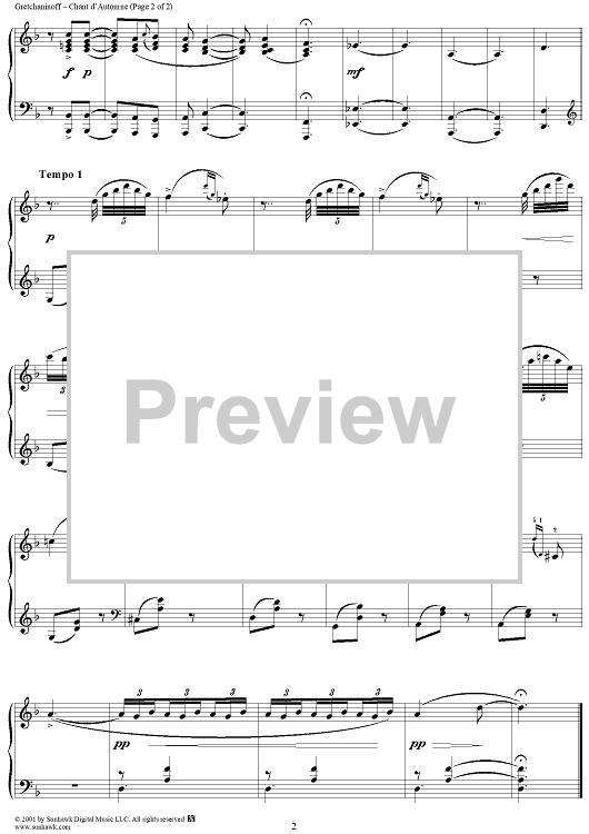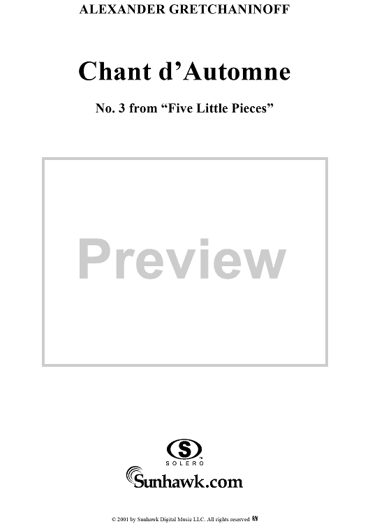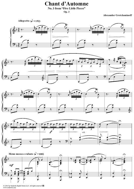 Digital Sheet Music for Chant d'Automne by Alexander Gretchaninoff scored for Piano Solo; id:285606