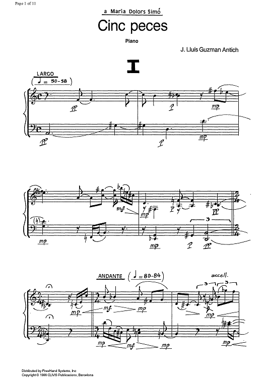 "Cinc peces" Sheet Music by Josep Lluís Guzman i Antich