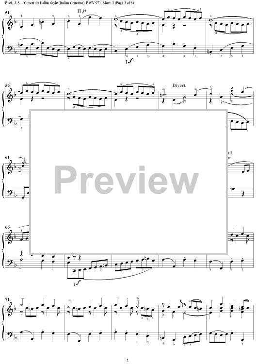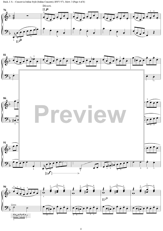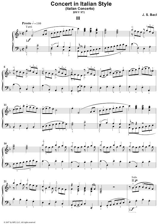 Digital Sheet Music for Concert in Italian Style, Presto by , Johann Sebastian Bach scored for Piano Solo; id:365152