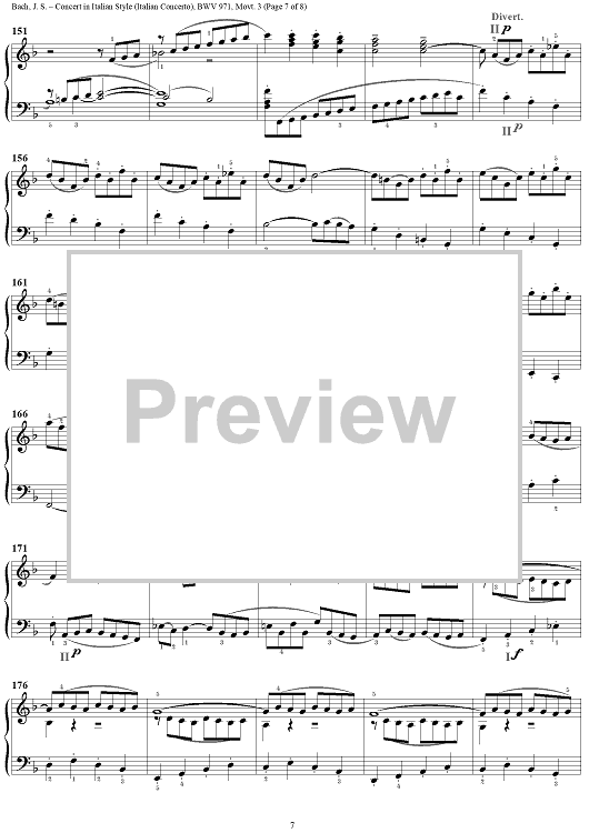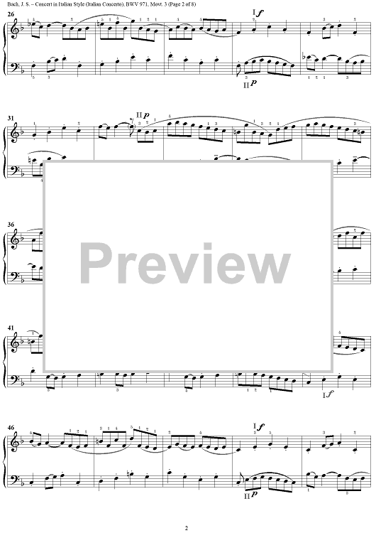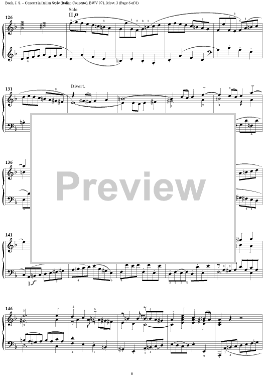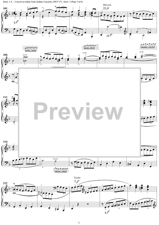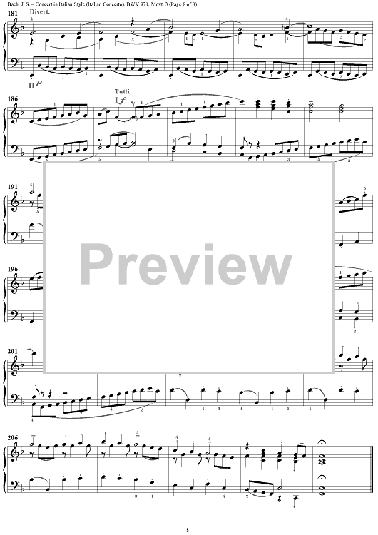 "Concert in Italian Style, Presto" Sheet Music by Johann Sebastian Bach