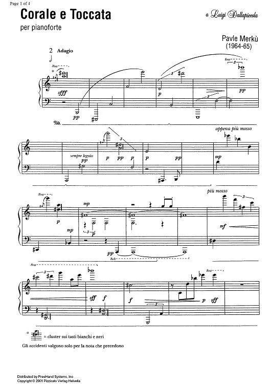"Corale e Toccata" Sheet Music by Pavle Merkù