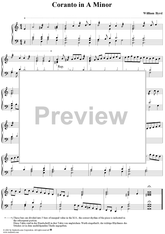 Digital Sheet Music for Coranto in A Minor by William Byrd scored for Piano Solo; id:252788