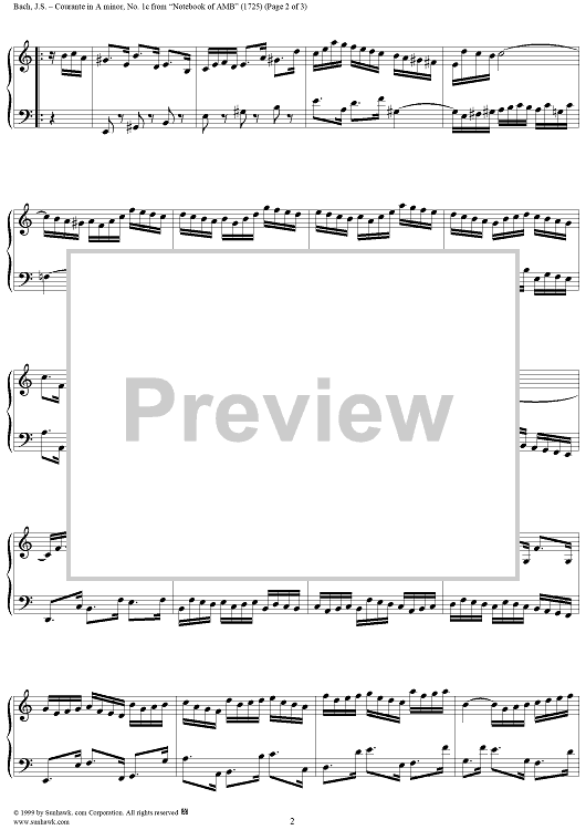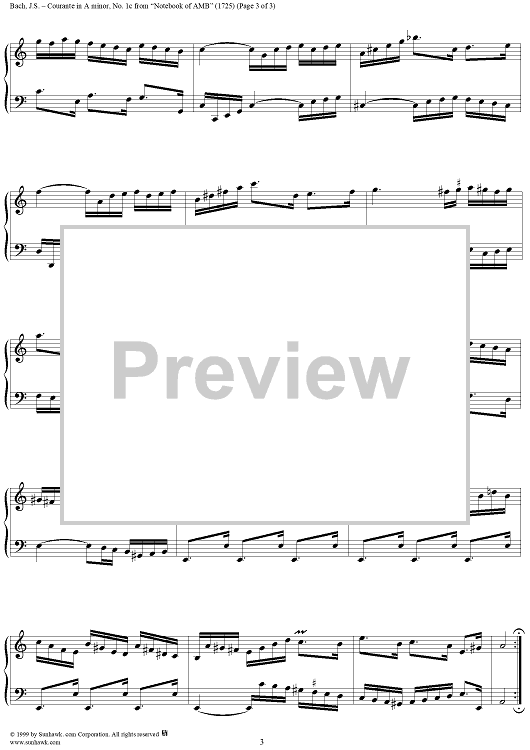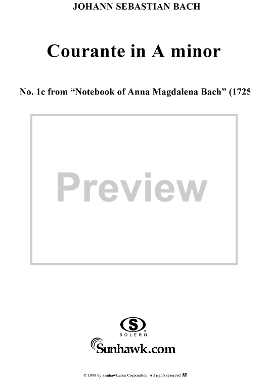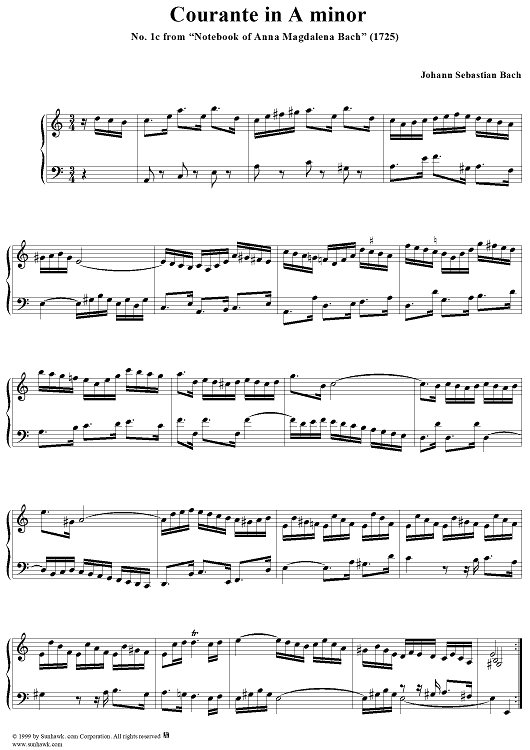 Digital Sheet Music for Courante in A Minor from the Notebook of Anna Magdelena Bach by Johann Sebastian Bach scored for Piano Solo; id:241108