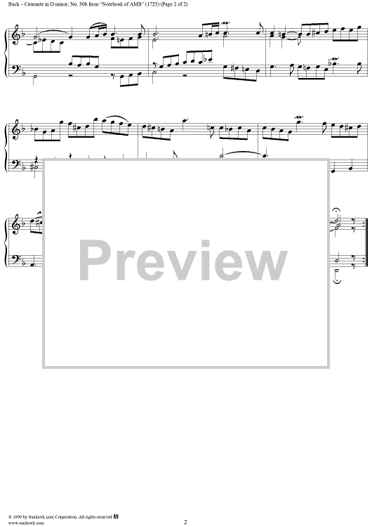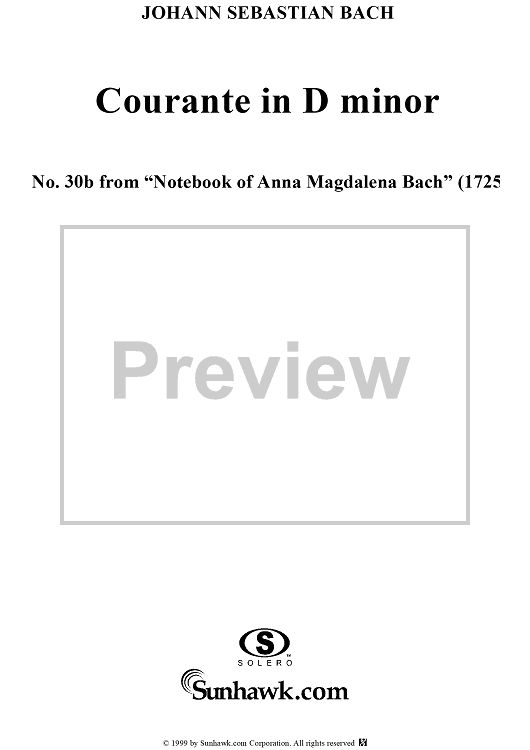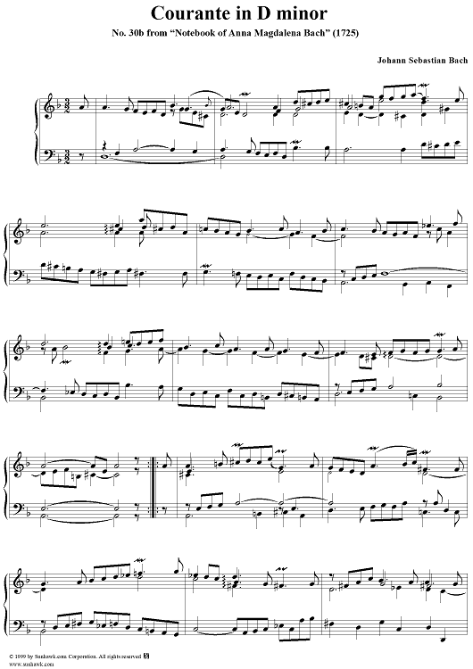 Digital Sheet Music for Courante in D Minor from the Notebook of Anna Magdelena Bach by Johann Sebastian Bach scored for Piano Solo; id:241126