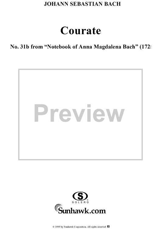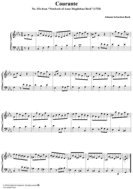 Digital Sheet Music for Courante - No. 31b from "Notebook of Anna Magdalena Bach" (1725) by Johann Sebastian Bach scored for Piano Solo; id:274252