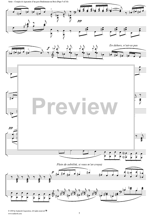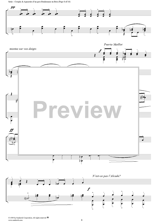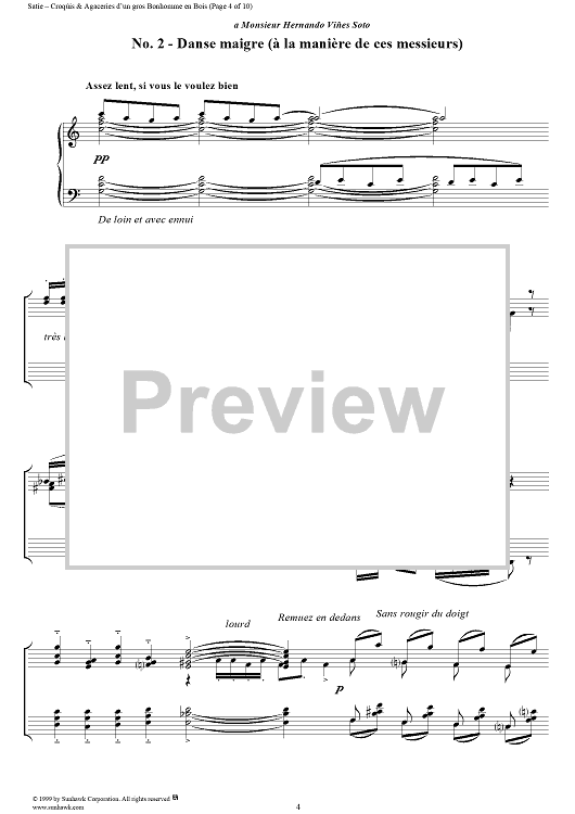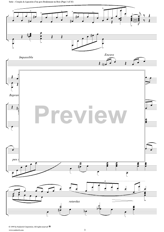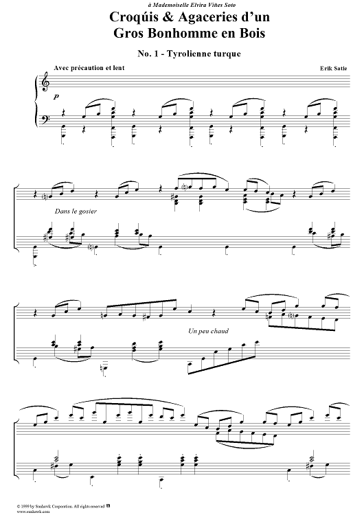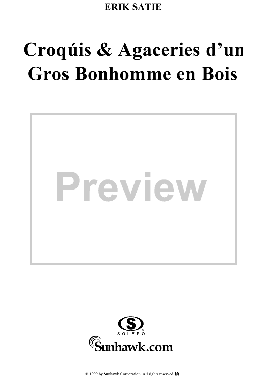 Digital Sheet Music for Croquis et Agaceries d'un gros Bonhomme en Bois (I, II, III) by Erik Satie scored for Piano Solo; id:256282
