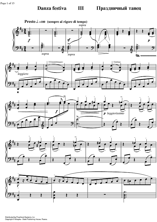 Digital Sheet Music for Danza Festiva - Forgotten Melodies 1, Op.38 No. 3 by , Nikolay Karlovich Medtner scored for Piano Solo; id:330186