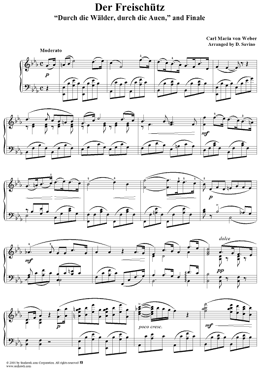 Digital Sheet Music for Der Freischütz, J277 by Carl Maria Von Weber scored for Piano Solo; id:254495