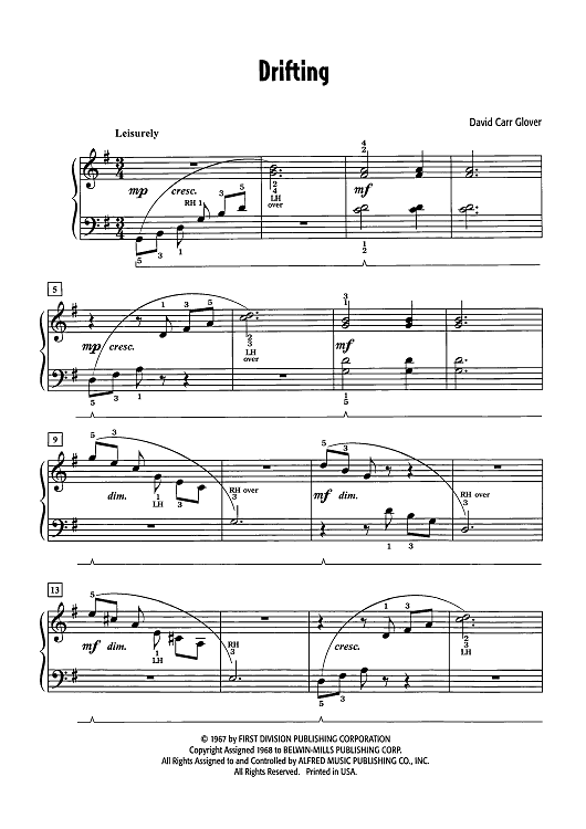 Digital Sheet Music for Drifting by David Carr Glover scored for Easy Piano; id:449323