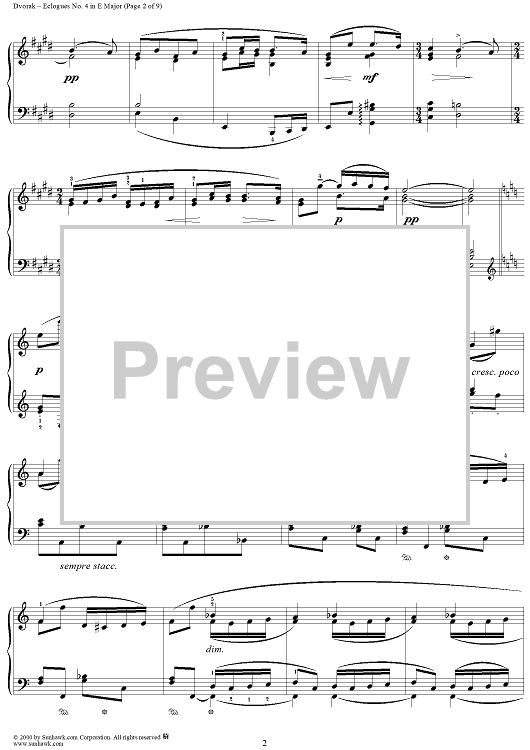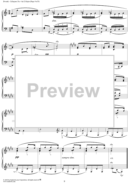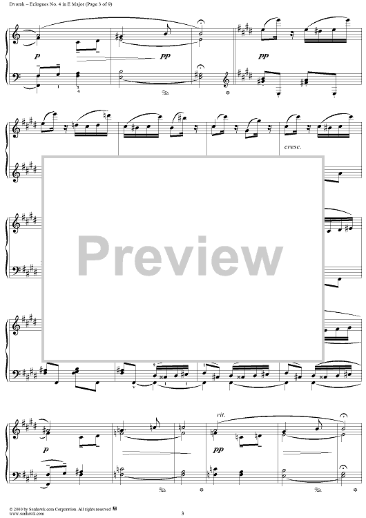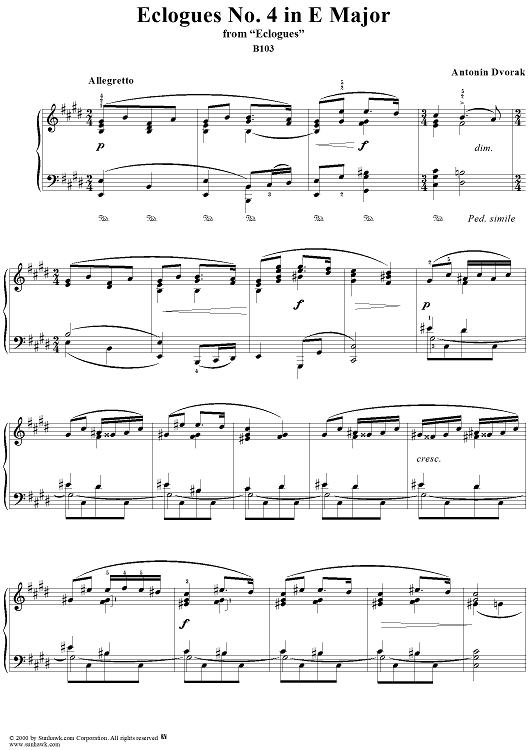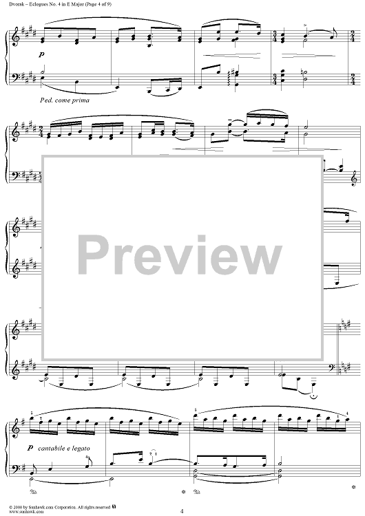 Digital Sheet Music for Eclogues No. 4 in E Major - from "Eclogues" - B103 by Antonín Dvorák scored for Piano Solo; id:271164