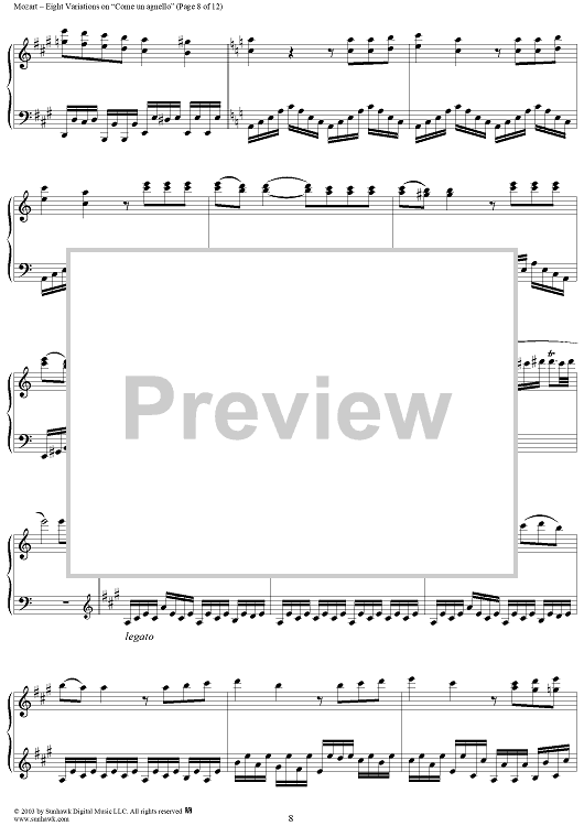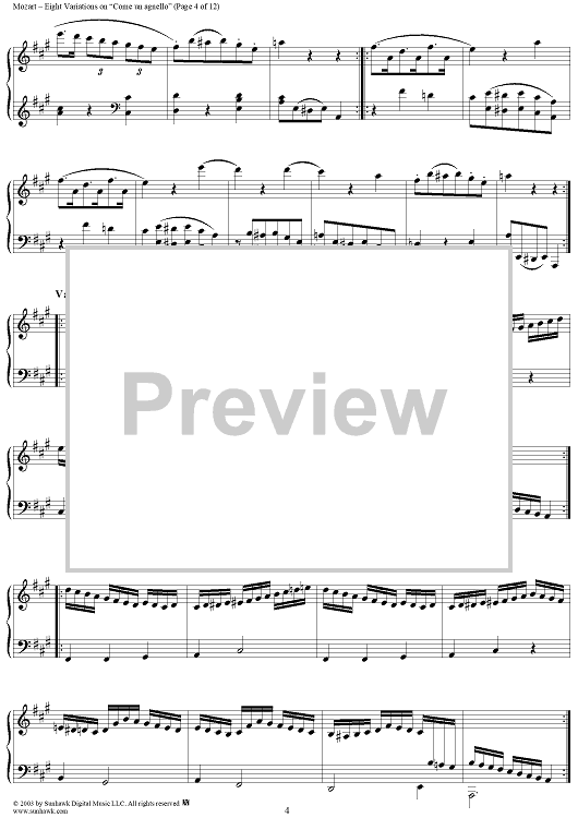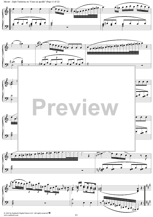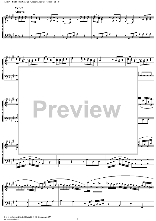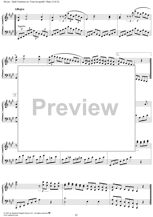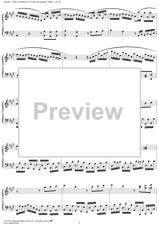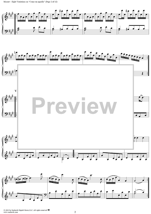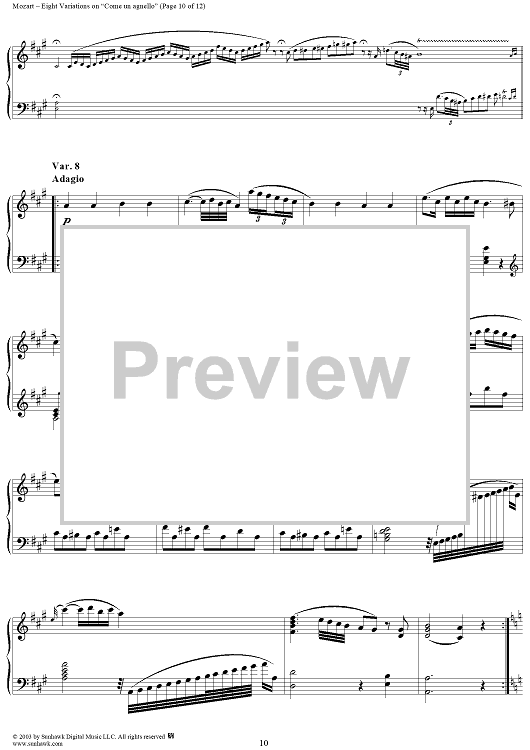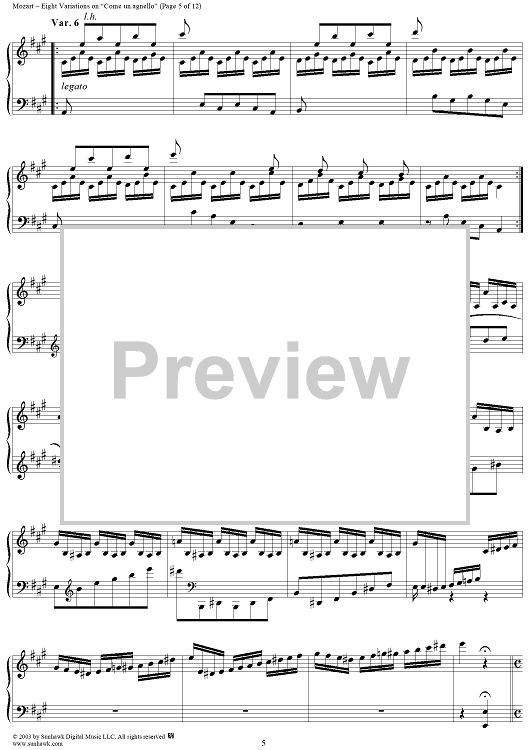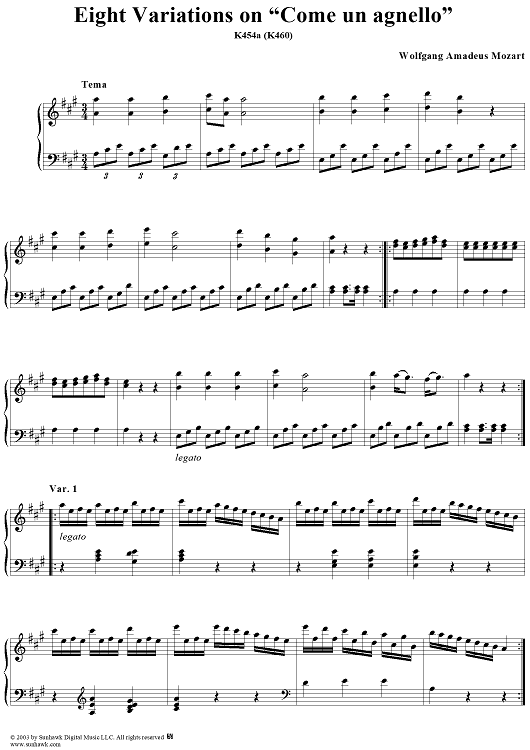Digital Sheet Music for Eight Variations on "Come un agnello", in A Major, K454a (K460) by Wolfgang Amadeus Mozart scored for Piano Solo; id:292323