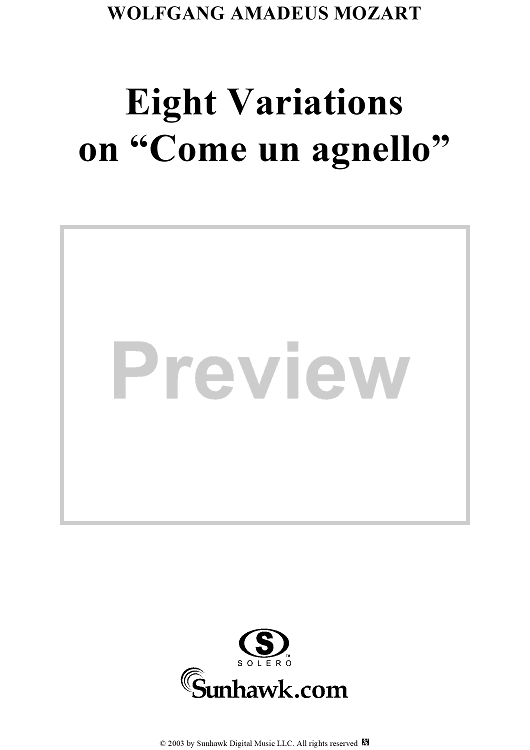 "Eight Variations on "Come un agnello", in A Major, K454a (K460)" Sheet Music by Wolfgang Amadeus Mozart