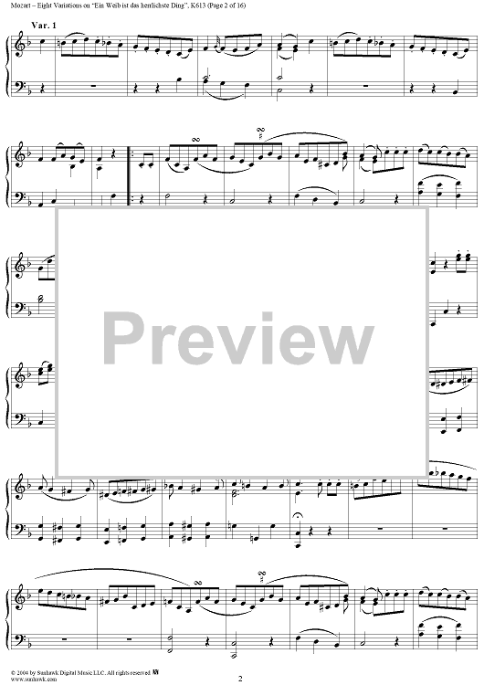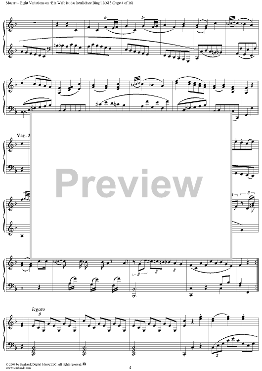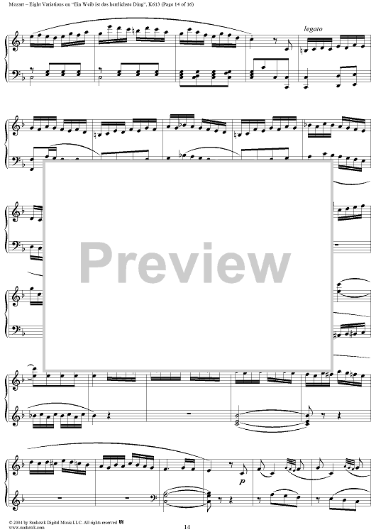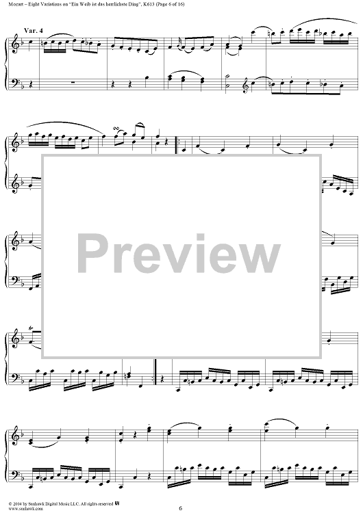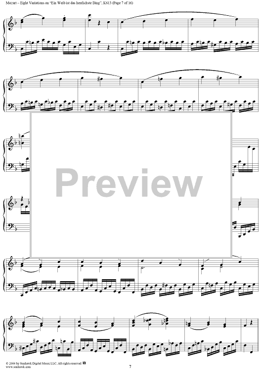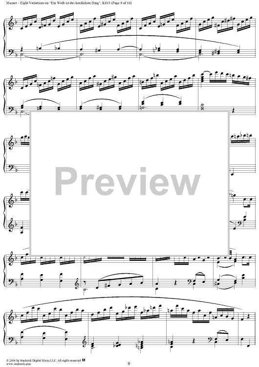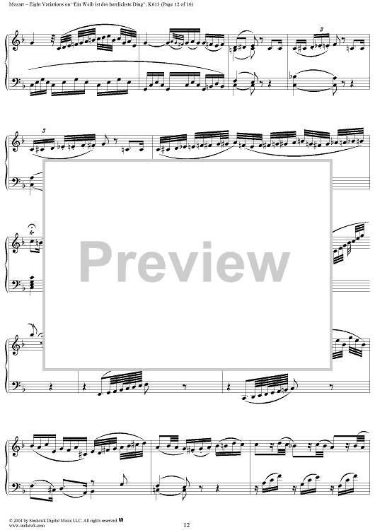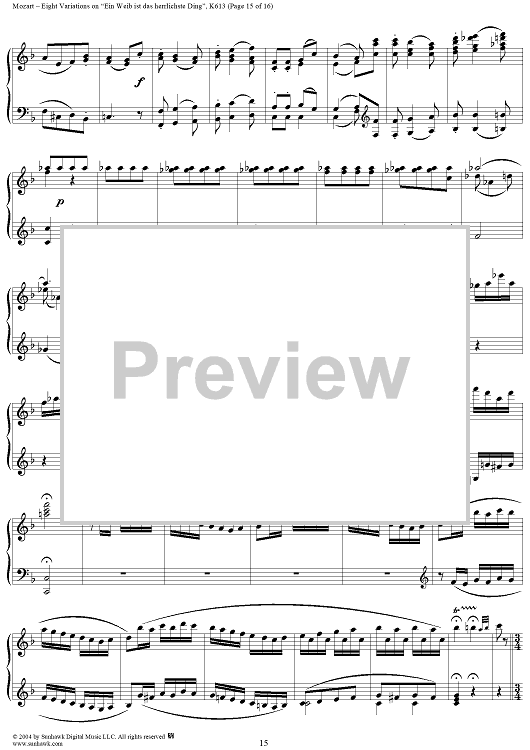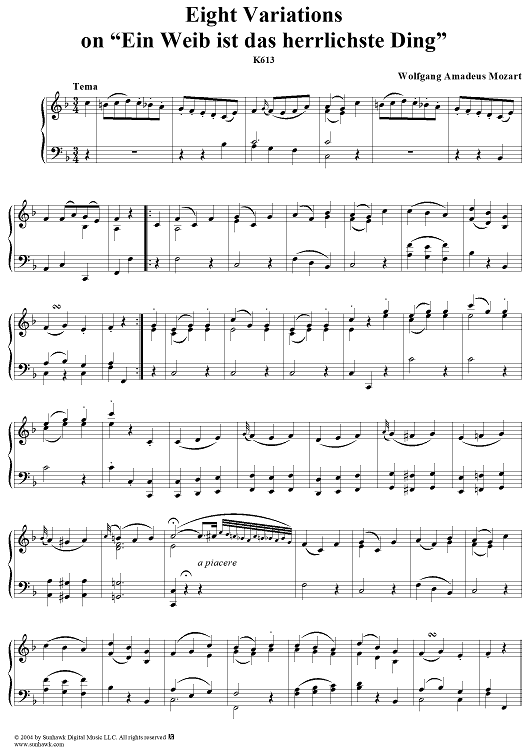 Digital Sheet Music for Eight Variations on "Ein Weib ist das herrlichste Ding", in F Major, K613 by Wolfgang Amadeus Mozart scored for Piano Solo; id:292326
