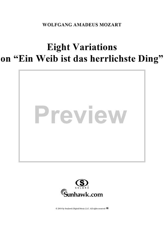 "Eight Variations on "Ein Weib ist das herrlichste Ding", in F Major, K613" Sheet Music by Wolfgang Amadeus Mozart