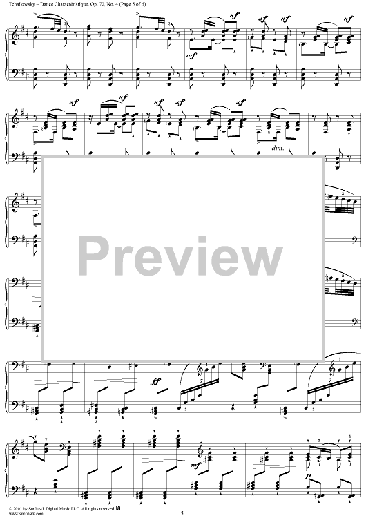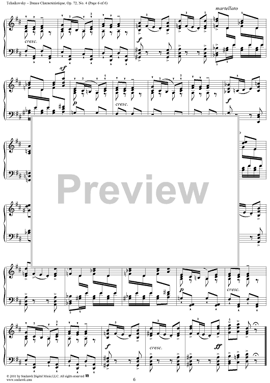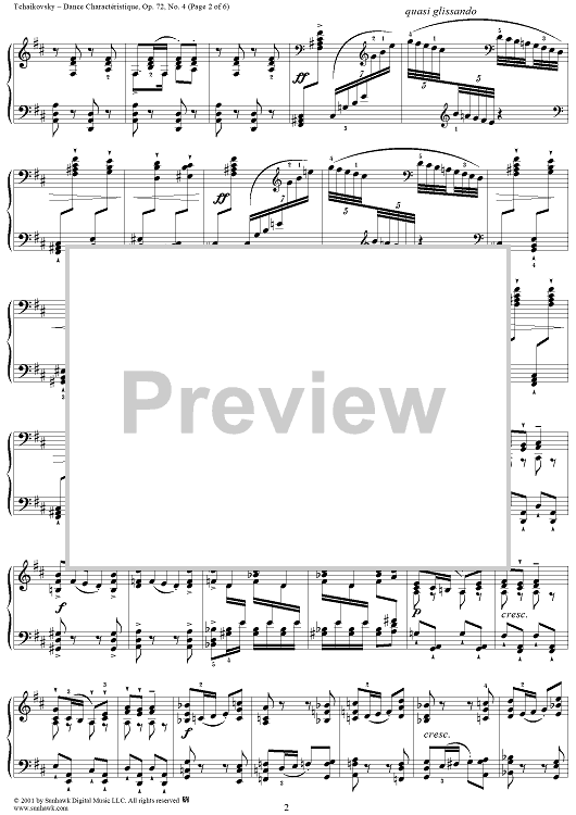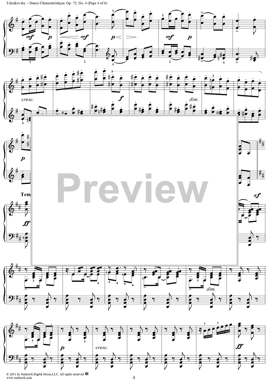 Digital Sheet Music for Eighteen Pieces. No. 4. Characteristic Dance by Peter Ilyich Tchaikovsky scored for Piano Solo; id:259851
