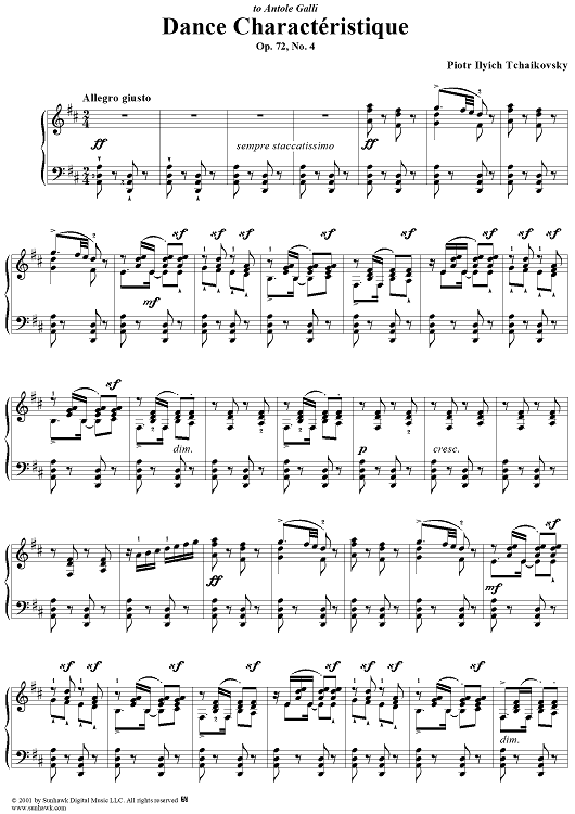 "Eighteen Pieces. No. 4. Characteristic Dance" Sheet Music by Peter Ilyich Tchaikovsky