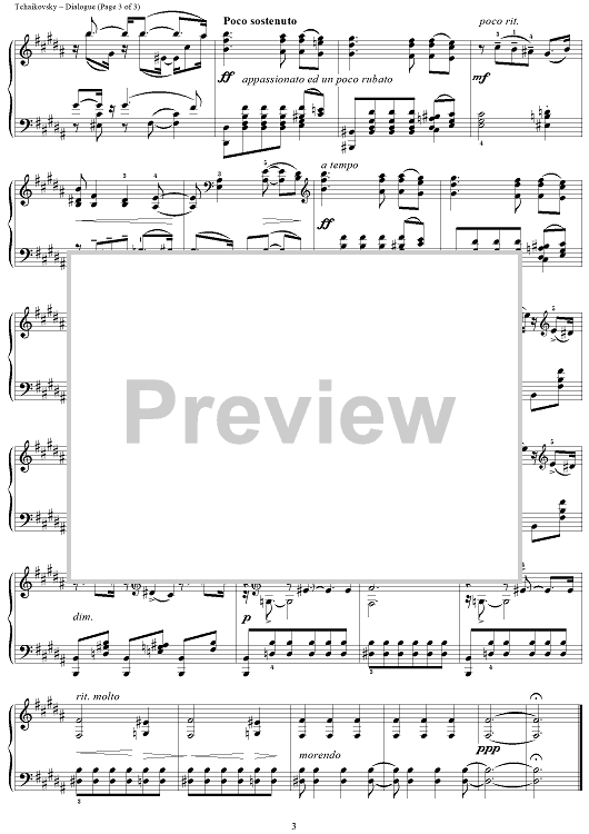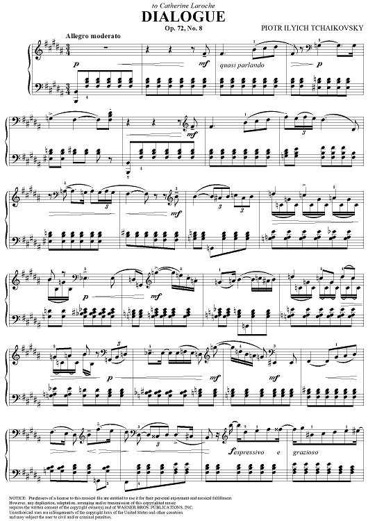 Digital Sheet Music for Eighteen Pieces. No. 8. Dialogue by Peter Ilyich Tchaikovsky scored for Piano Solo; id:259852