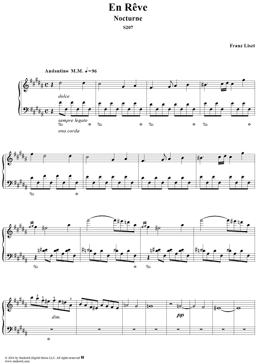 Digital Sheet Music for En Rêve, Nocturne, S207 by Franz Liszt scored for Piano Solo; id:295543