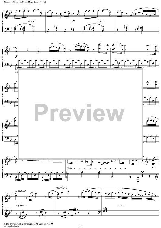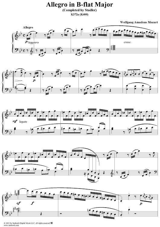 Digital Sheet Music for Erster Satz einer Sonate, K372a (K400) by Wolfgang Amadeus Mozart scored for Piano Solo; id:253247