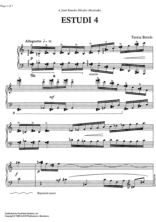 Digital Sheet Music for Estudi 4 by , Teresa Borràs scored for Piano Solo; id:348078