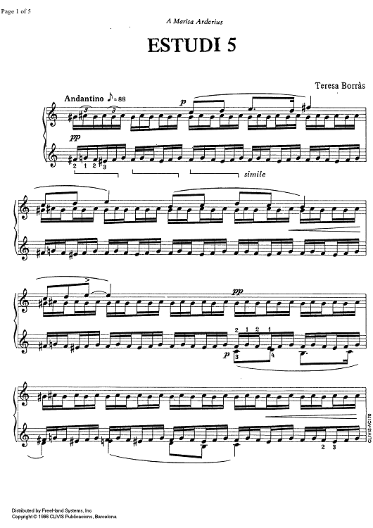 Digital Sheet Music for Estudi 5 by , Teresa Borràs scored for Piano Solo; id:348079