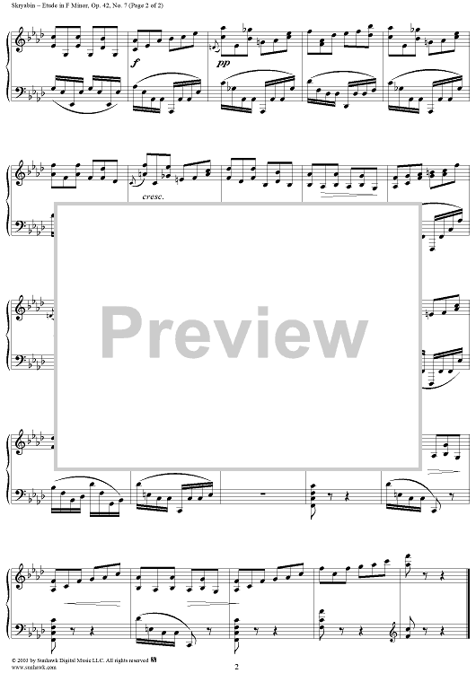 Digital Sheet Music for Etude in F Minor, Op. 42, No. 7 by Alexander Scriabin scored for Piano Solo; id:293726