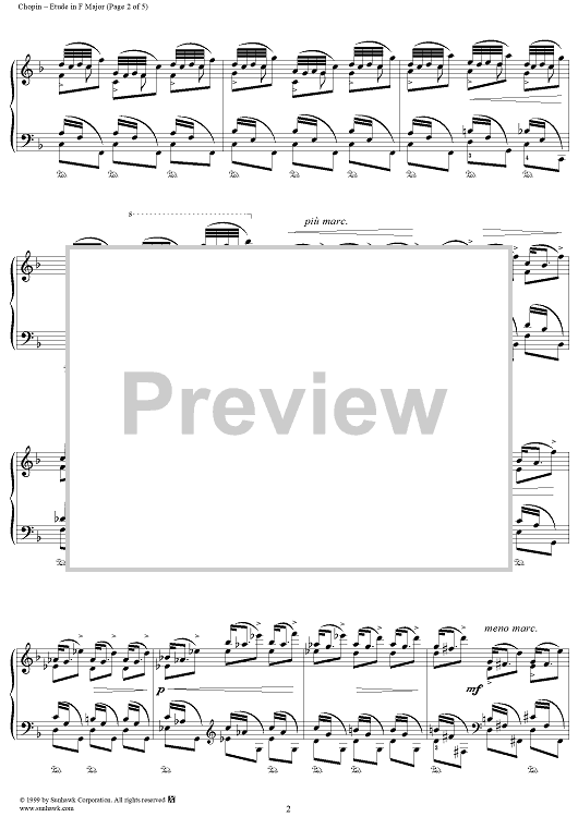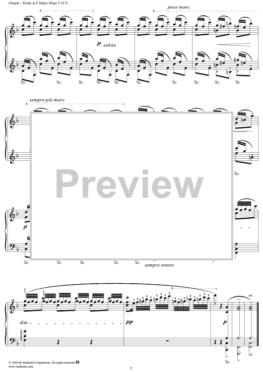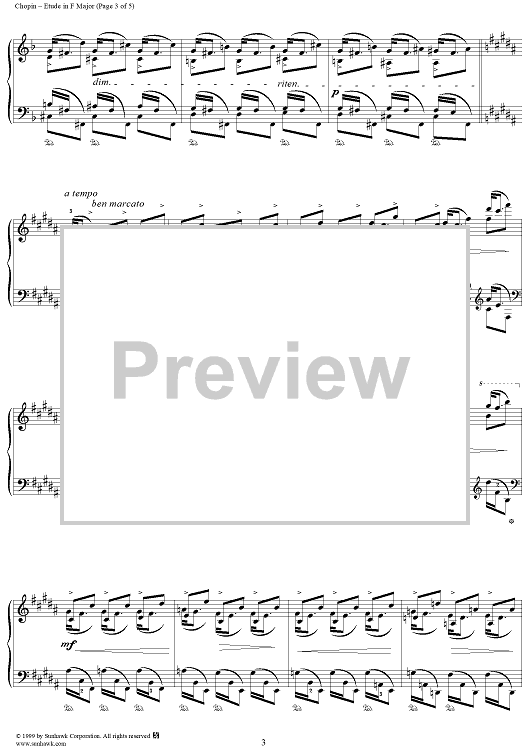 Digital Sheet Music for Etude Op. 25, No. 3 in F Major by Frederic Chopin scored for Piano Solo; id:118114