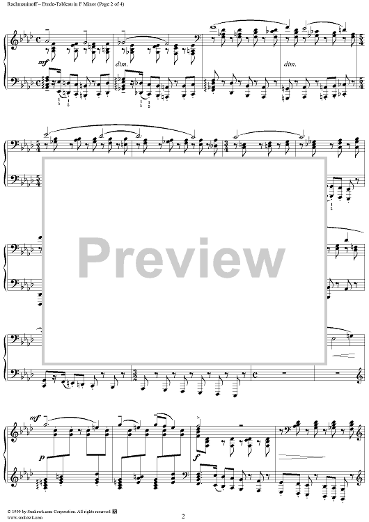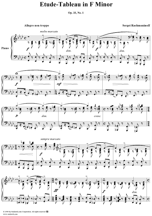 Digital Sheet Music for Etude-Tableau No. 1 in F Minor, Op. 33 by Sergei Rachmaninoff scored for Piano Solo; id:255021