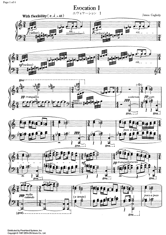 "Evocation 1" Sheet Music by Janos Cegledy