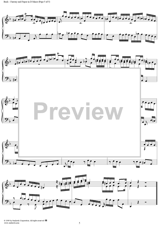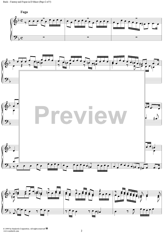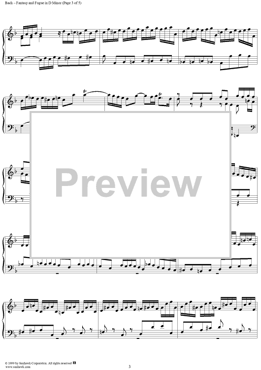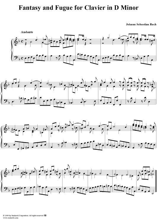 Digital Sheet Music for Fantasy and Fugue in D Minor, BWV905 by Johann Sebastian Bach scored for Piano Solo; id:276444
