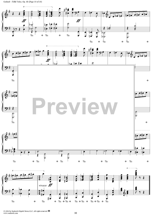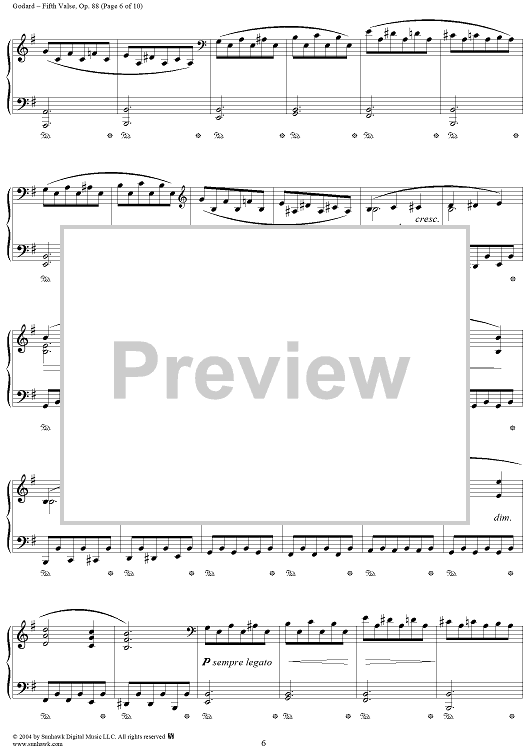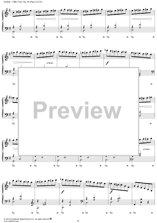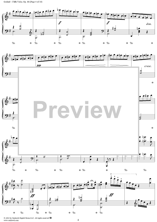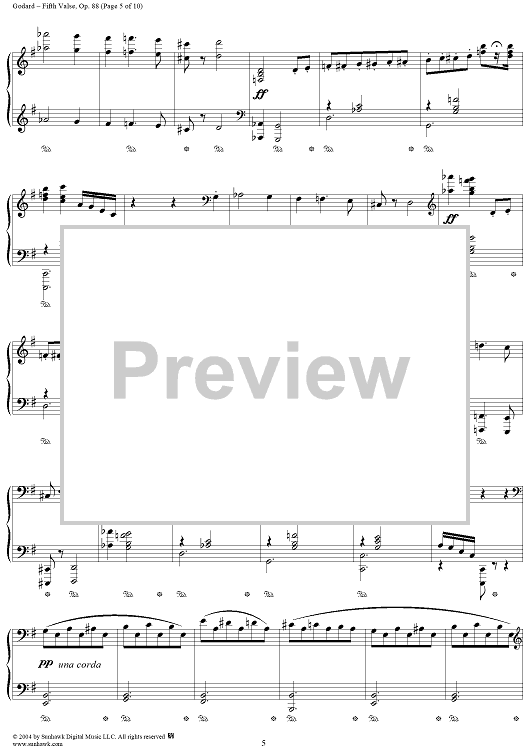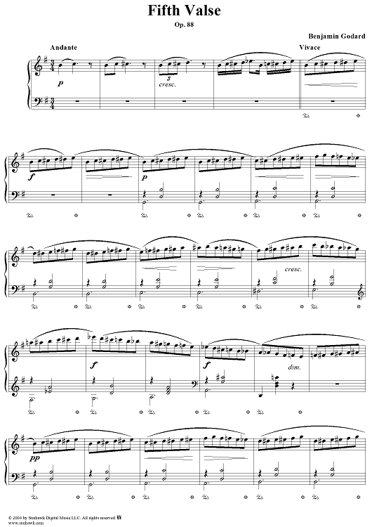 Digital Sheet Music for Fifth Valse, Op. 88 by Benjamin Godard scored for Piano Solo; id:294810