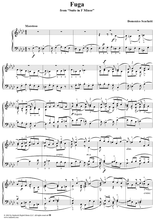 Digital Sheet Music for Fuga by Domenico Scarlatti scored for Piano Solo; id:283682
