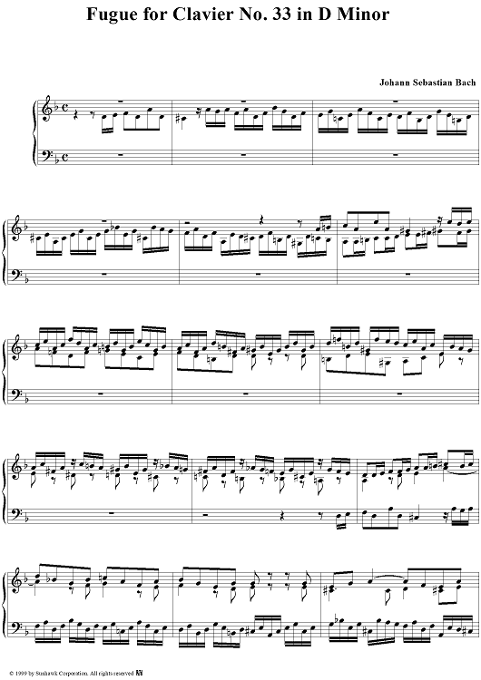 "Fugue for Clavier in D Minor, BWV948" Sheet Music by Johann Sebastian Bach