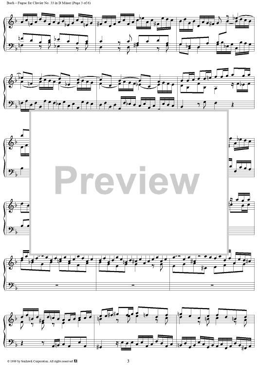 Digital Sheet Music for Fugue for Clavier in D Minor, BWV948 by Johann Sebastian Bach scored for Piano Solo; id:276453