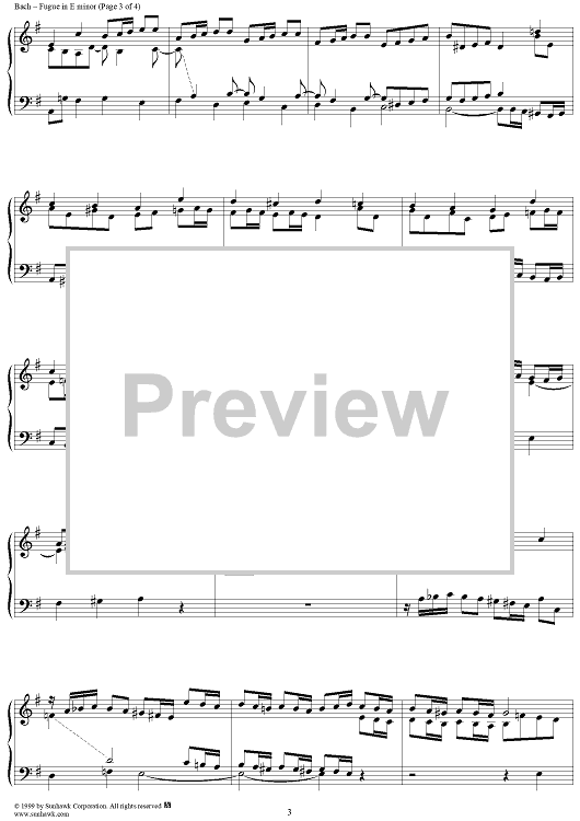 Digital Sheet Music for Fugue for Clavier in E Minor, BWV778 by Johann Sebastian Bach scored for Piano Solo; id:276401